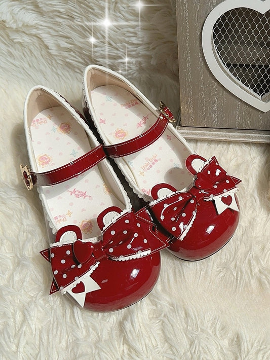 Buckle Red - Mary Low Lolita Polka-dot with Janes Sweet Ear PU Bear Bow Heel Teddy