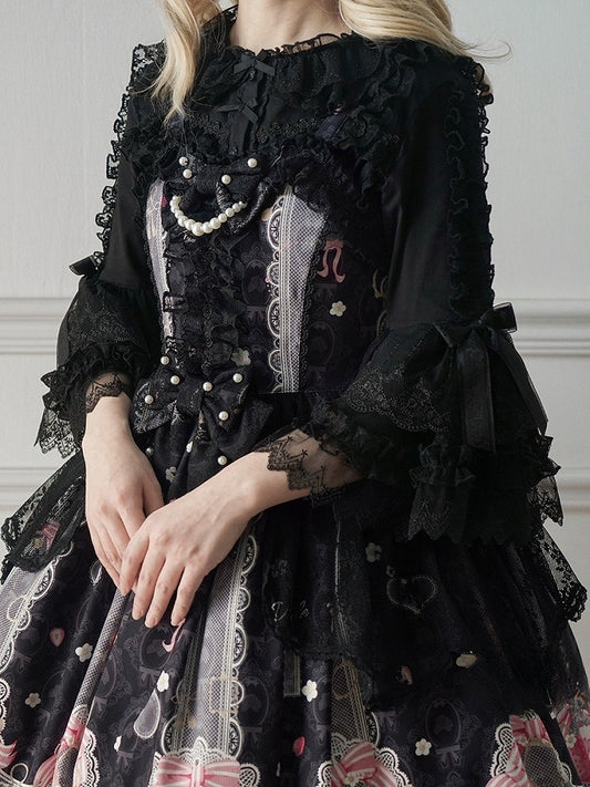 Sleeves Neckline Black 3/4 Lolita Ruffle Blouse