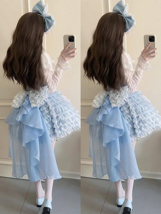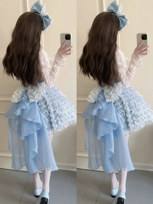 Hem Train Lace + Blue Bow JSK Only / Ruffle Lolita Dress Multi-Layered