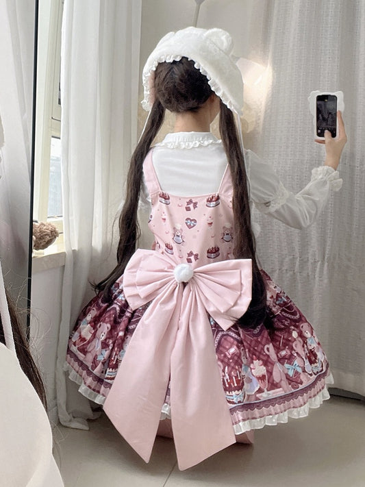 and Sweet Bear Lolita Print + Dress Big Bow Cake Overall Pink Train