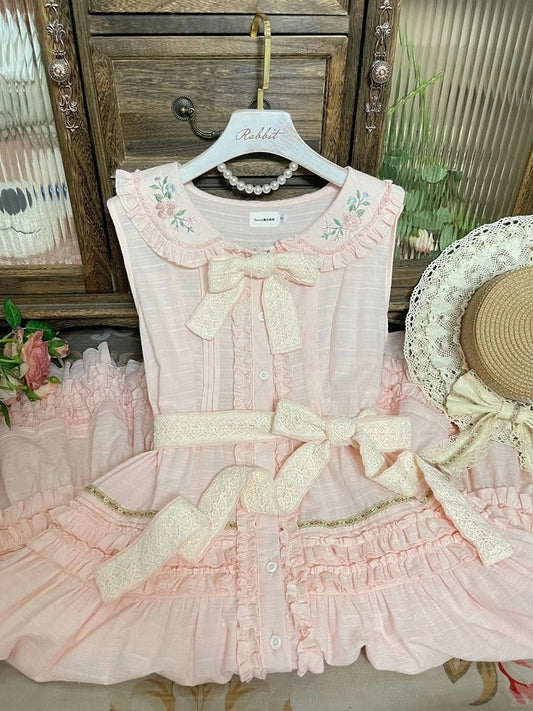 Pink Corset Waist Double-Layered Skirt with Detachable Bowknots Dusty Kei Jirai