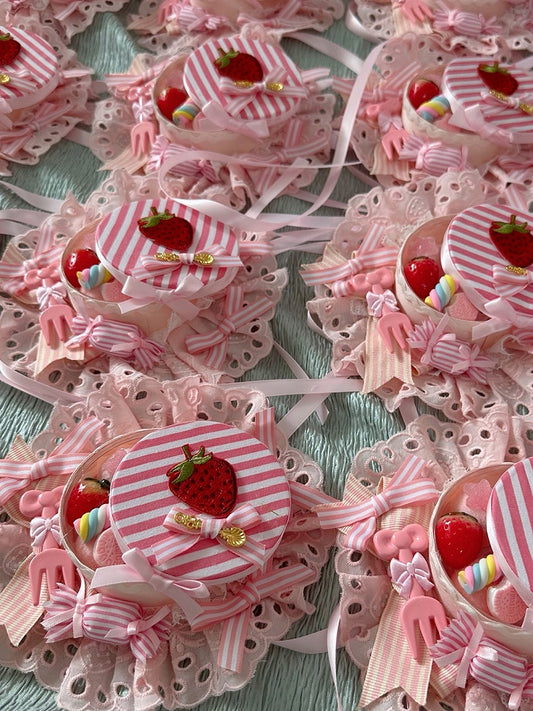 with Lolita and Striped Hairclip Embroidery Strawberry Pink Bow Candy Box White