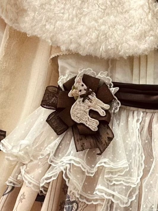 Bowknot Lolita Brown Letter Lace Choker Print Sweet