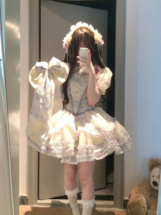 Corset Sweet Pink Dress Decorations Layered Lolita Waist Boned with Bow