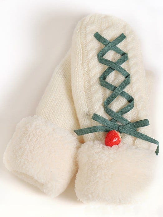 Knitted Sweet Gloves Lolita Lace-Up Strawberry