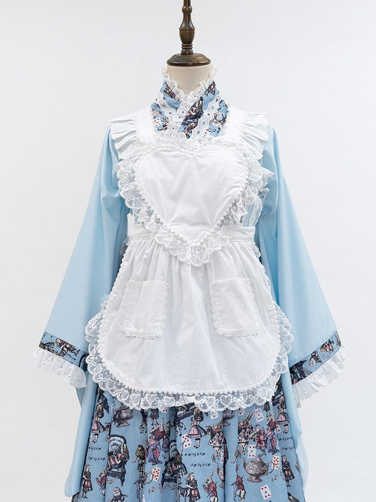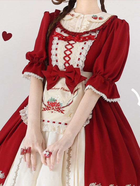 with Lolita Hem and Sweet Beige Embroidered Red Dress Ruffle Strawberry Short-sleeved Apron