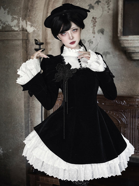Hat Jabot Lolita Dress White Brooch Elegant Neck Black Short + Ruffled