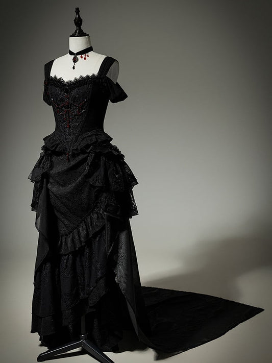 Skirt Black Aristocrat Corset Boned High Waist for Victorian 68-82CM Clearance-Size Belt Lolita Gothic L