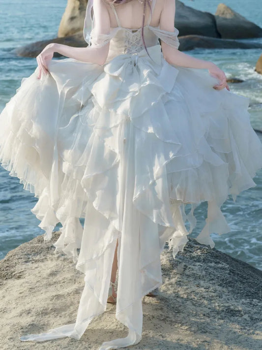 JSK Cascading Corset Layered Princess White Shiro Ruffle Lolita Skirt Trim Dress