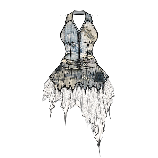 Cross Skirt Belt Waist Lace Patches with White Low Applique Buckle Punk