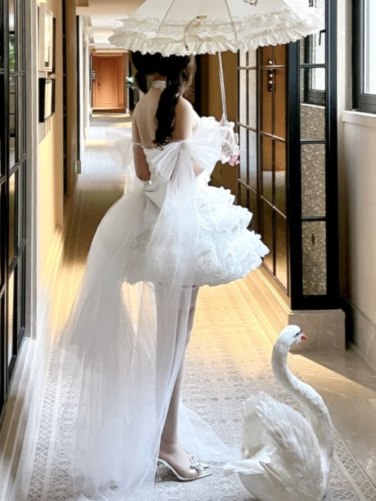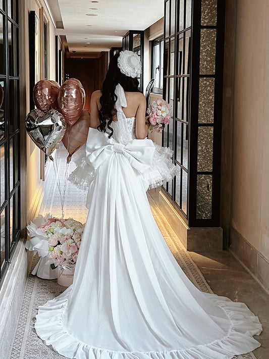 White Floor Length Big Bow Train