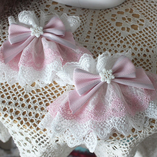 Bowknot Details Lace Trim Bunny Ears Hairclips