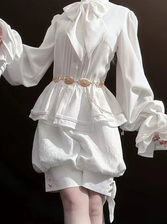 Puff Ram Lace Leg Top Belt Sleeve Ruffle Love Sleeve