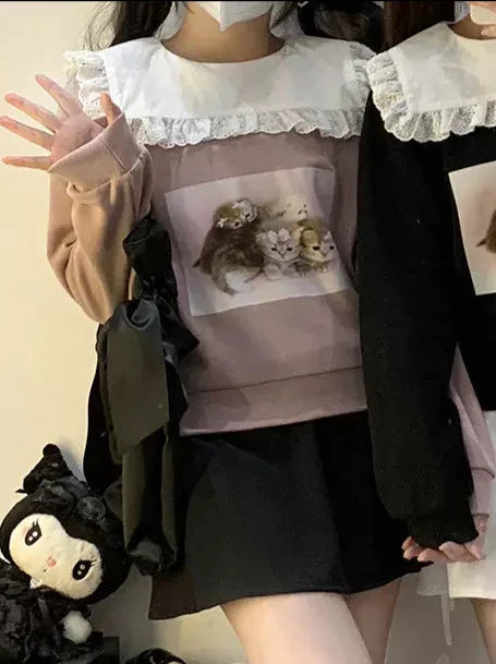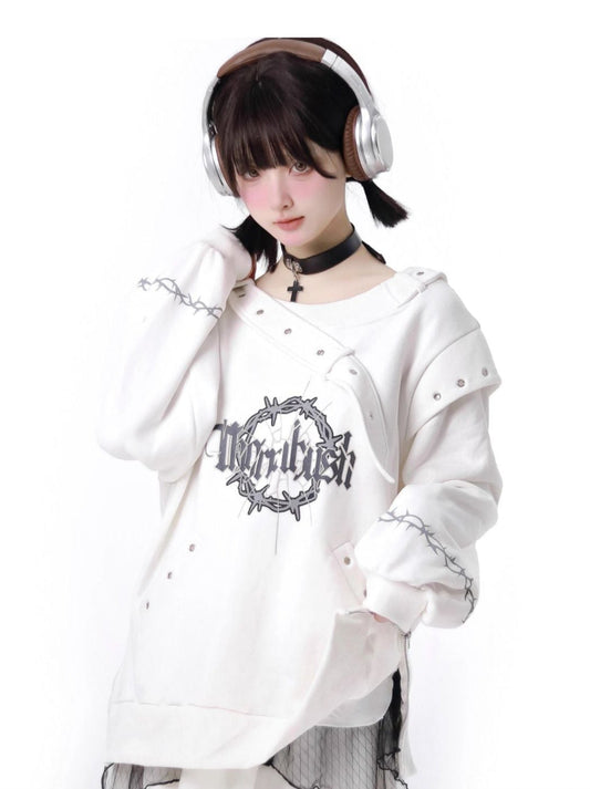 Dark Soon Print Design Sweat Suit Eyelet Trainer + Lace Elegula Skirt