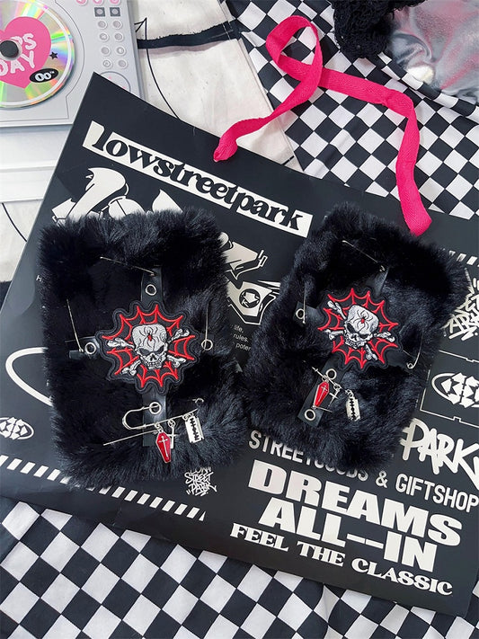 Punk Black High Waist Slim-fit Fishtail Pants with Skeleton Hand Buckle Belt