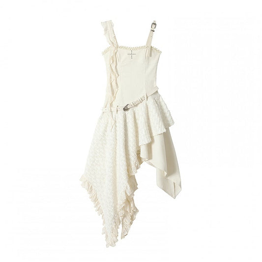 Handkerchief Hem Apricot Dress with Buckle Waist Belt
