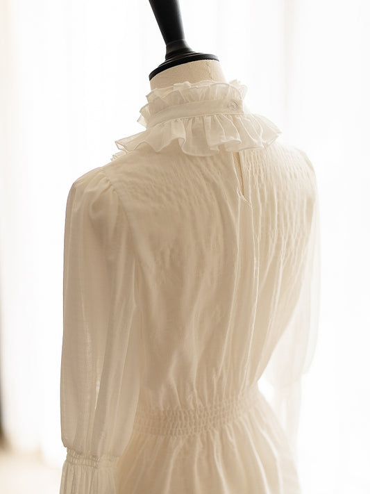 White Ouji Lolita Long Sleeves Shirt with Jabot Bowtie