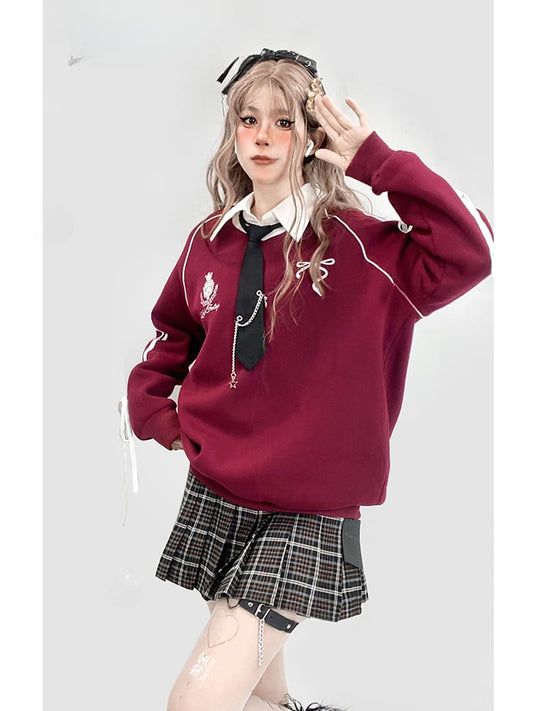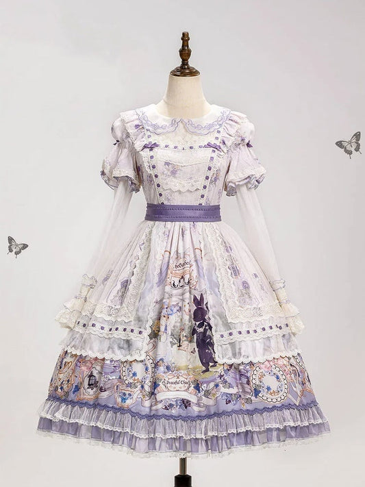Purple Ouji Lolita Long Sleeves Shirt with Jabot Bowtie