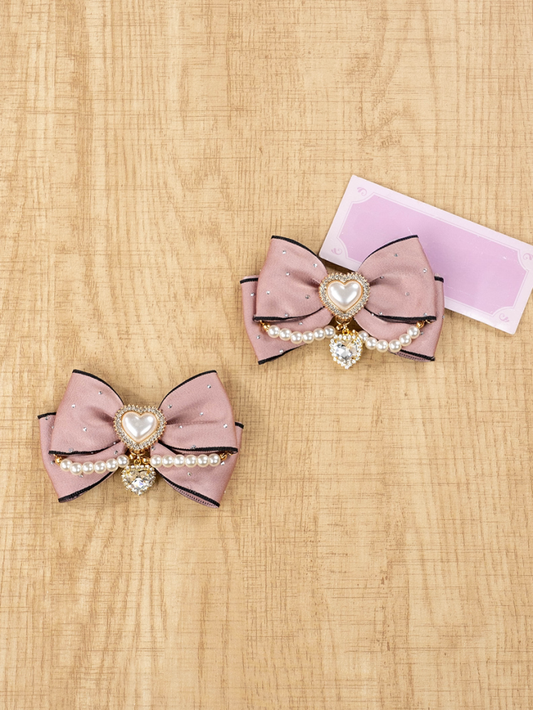 Jirai Kei Heart Rhinestones and Beads Bowknot Hairclip