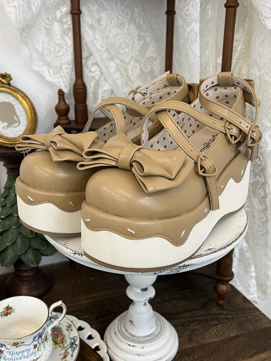 Platform Lolita Buckles Sole Yellow Sweet Brown Wedge Shoes with