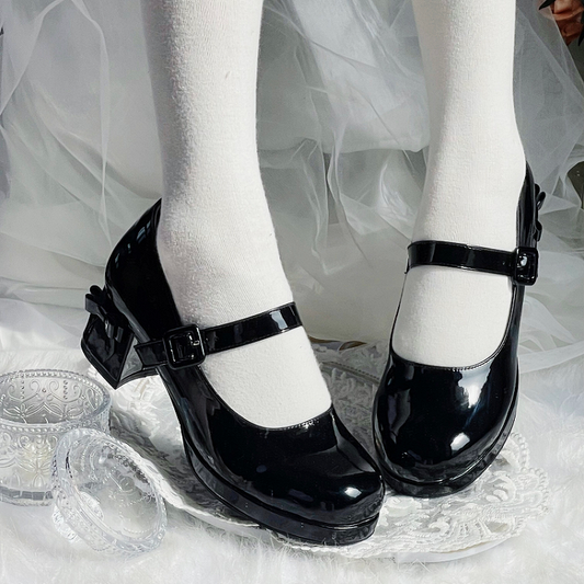 Black Bowknot Buckle Strap Block Heel Lolita Mary Janes