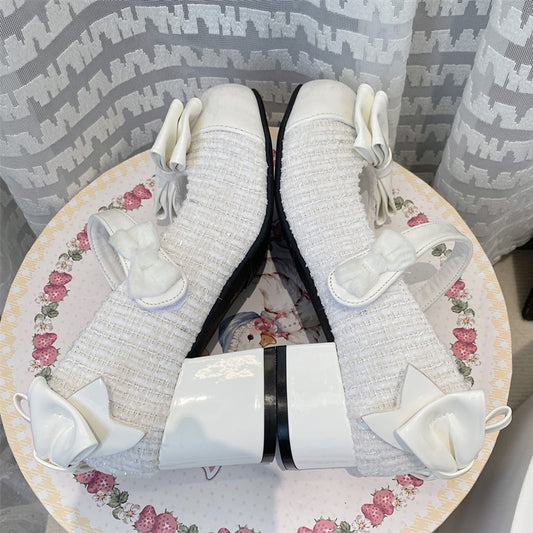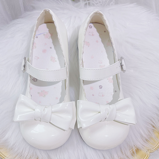 Sweet Lolita White Bowknot Round Toe Block Heel Mary Janes
