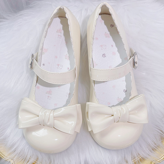 Sweet Lolita Apricot Bowknot Round Toe Block Heel Mary Janes