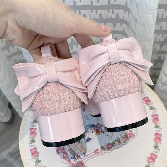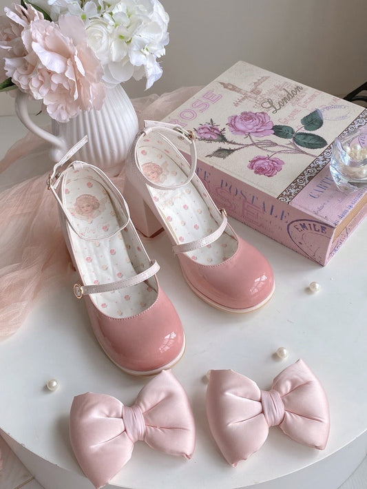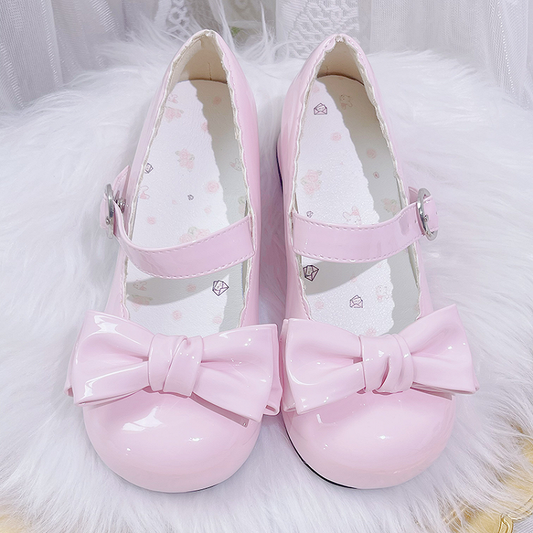 Sweet Lolita Pink Bowknot Round Toe Block Heel Mary Janes