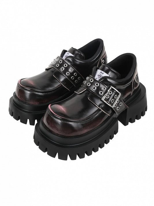 Punk Accents Heel Shoes - Black Block Buckle High Platform