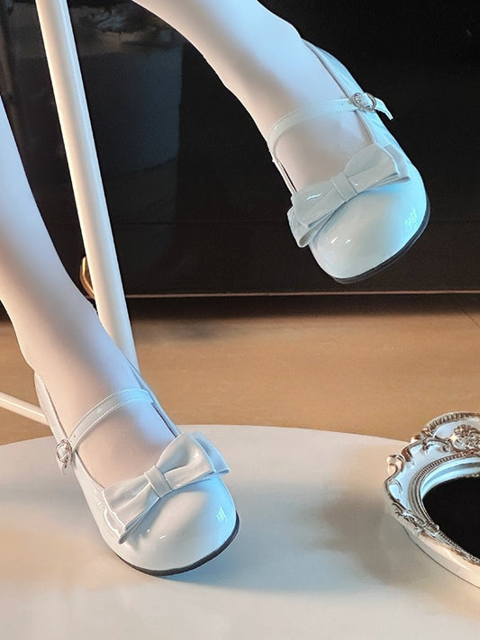 Shoes Bow - Detachable PU Back Elegant Blue