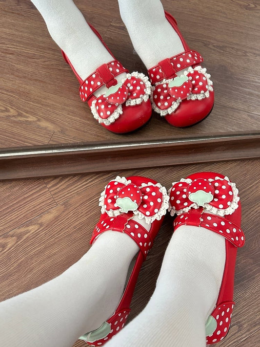 Shoes Sweet Sole Velcro Top with Strap Flat Bow Red PU Closures Lolita Polka-dot at Pattern
