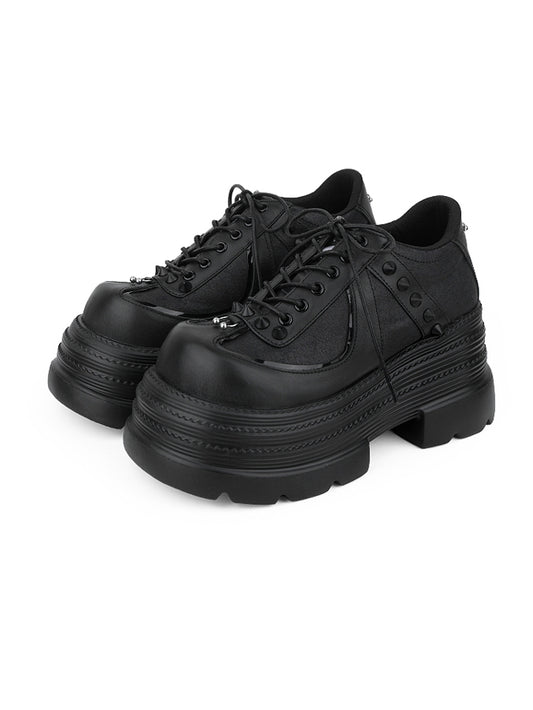 Platform Closure Design Shoes Black Lace-up Accents Stud with Punk