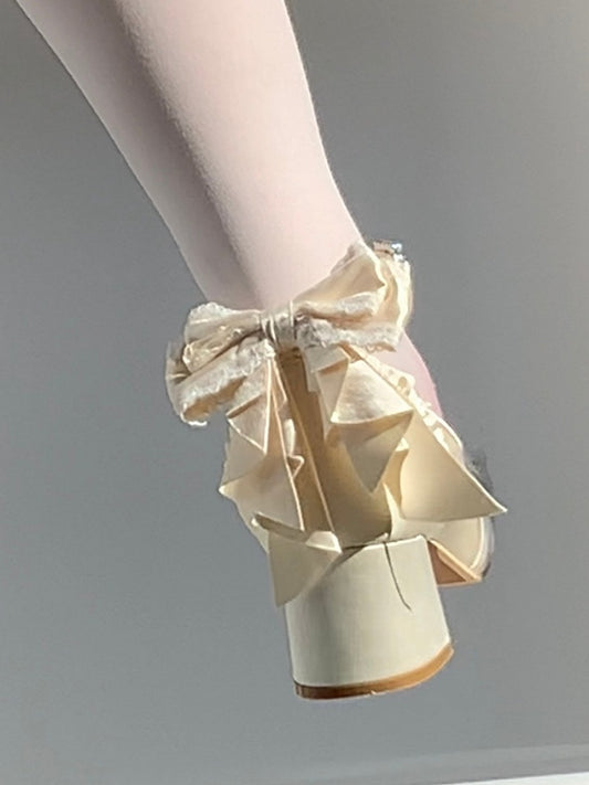 White Lace Mid-heel and Lolita Trim Bow Shoes Accents with Sweet