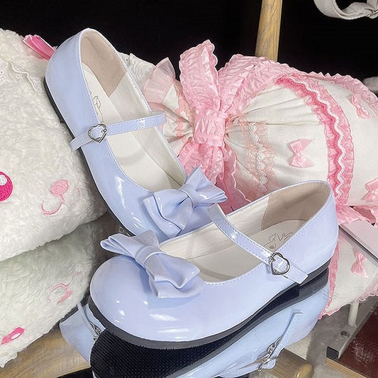 Black Sweet Lolita Flat Shoes with Bow Accents & Heart-shaped Snap