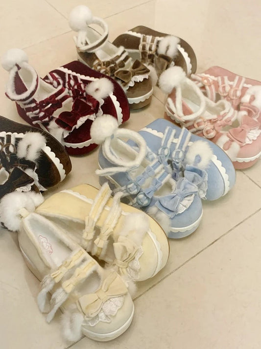 Brown Sweet Lolita Platform Snow Boots - Front Bow Accent with Rear Lace-Up Detail