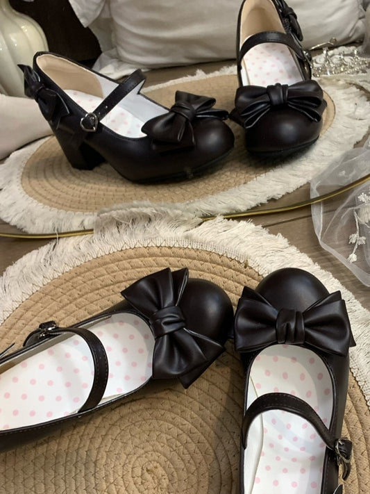 Lolita Shoes Deep Toe Heel Sweet Round 2cm/4cm Mary Accents with Pink Jane Bow