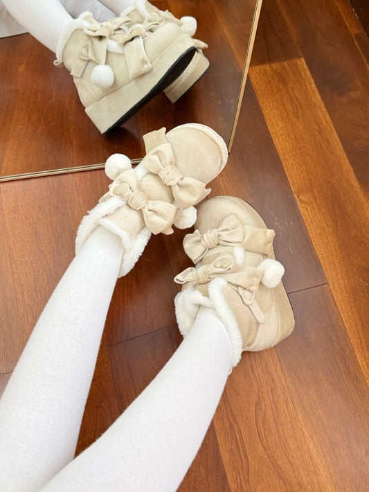 Lining Boots Apricot Design Fleece Heart Platform Bow Sweet Details Cozy Winter Accents