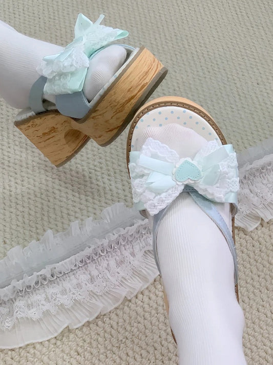Low-heel Shoes Sweet at Top Blue Knotted Baby Bow Trim Lace