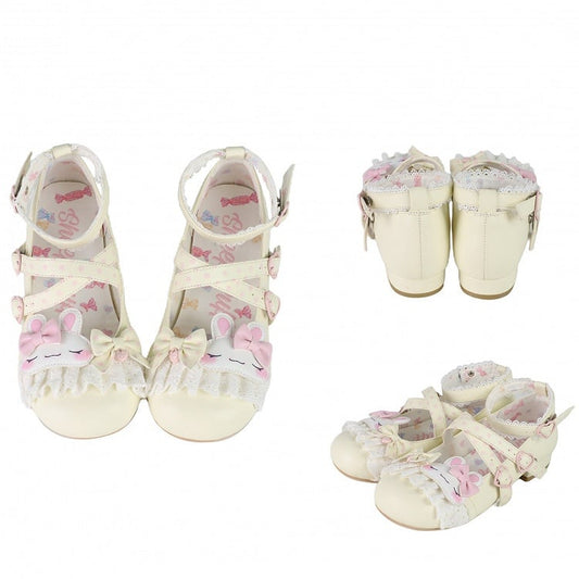 Lolita Polka-dot Design Pink Bunny Applique Bowknot Pattern Lace Trim Sweet Crisscross Details Shoes