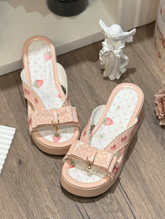 Lolita Top Print Wa Platform Pink Slippers Strawberry at Bow