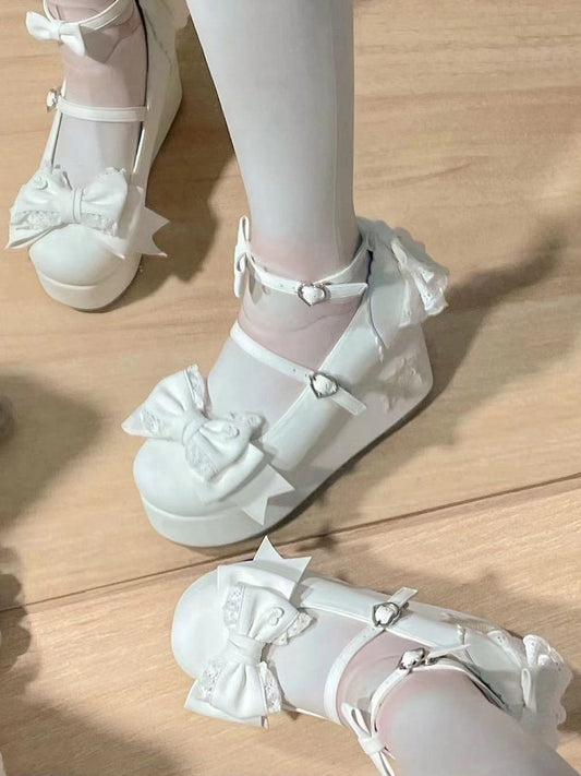 Detachable Back Elegant with White High Bow Shoes Heel Lolita
