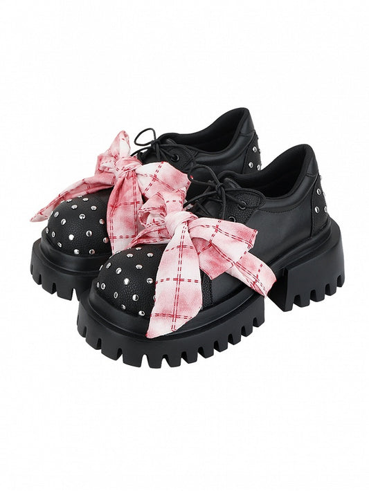 Bow Accent Studs Red Rock Plaid - Punk Black Platforms Silver Knotted Details