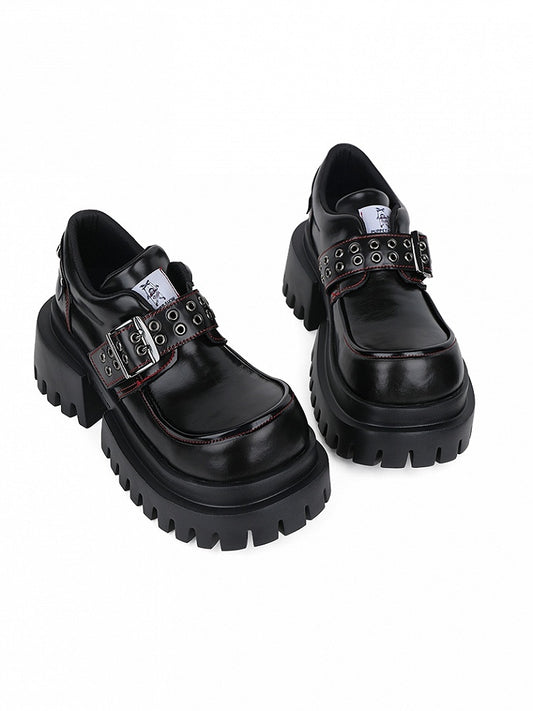 Buckle Bold Heels Rock Punk with Accents Chunky Sole - Platform