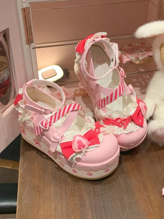 Cake Raspberry Lolita Sweet Mary Jane Pink Platform Strawberry Shoes