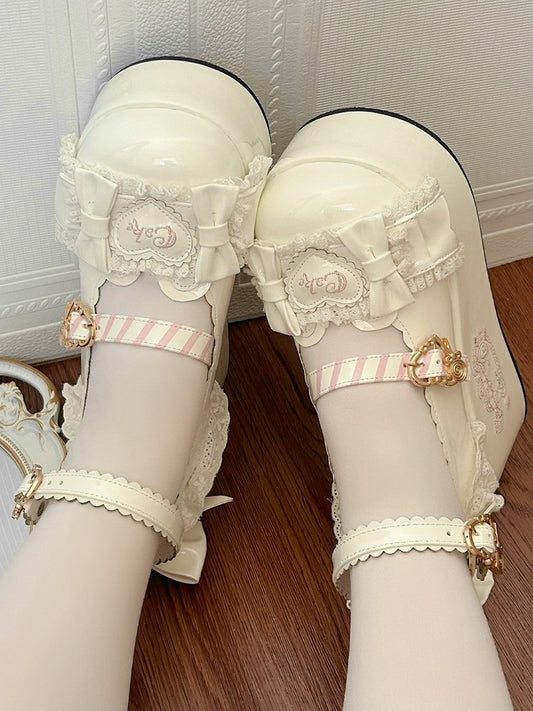 Mid-heel Sweet Lolita Mary Janes - Kitty Toast Heel with Playful Bow & Scalloped Edge