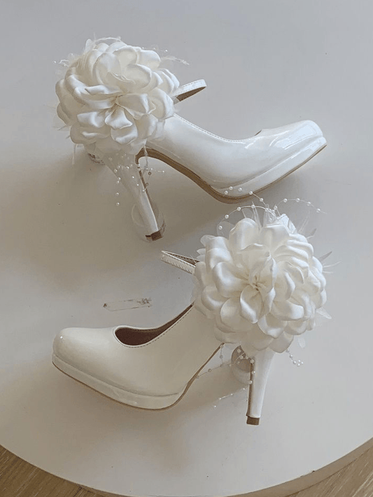Detail Floral Classic Off-white with High-heel Lolita Shoes