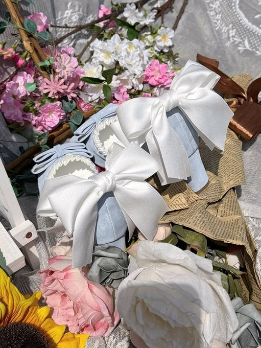 Milk Bowknot Heels Lolita Shoes White Platform High Block Design Butterfly Stud