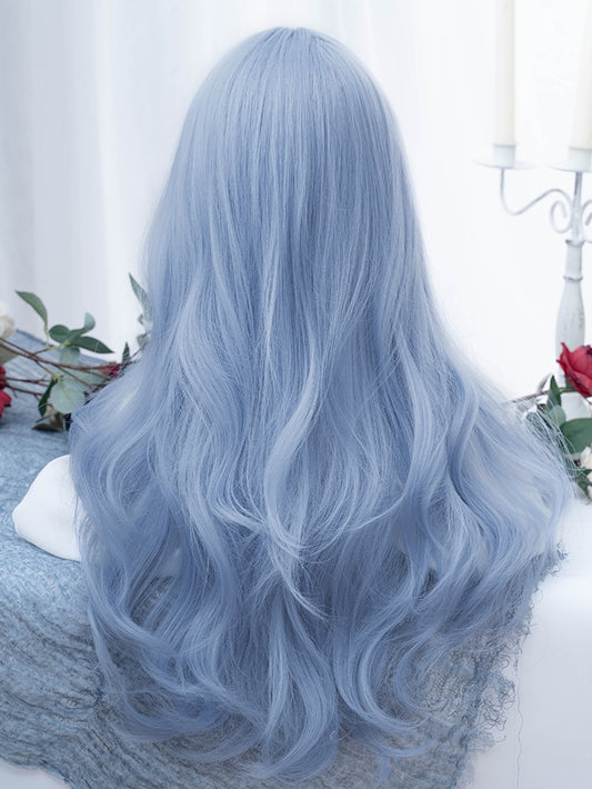 Blue-Grey Long Wavy Synthetic Wig With Bangs