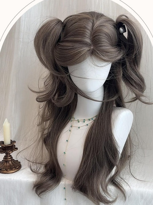 Brown Under Bust Length 60-65CM Wavy Wig with Air Bangs