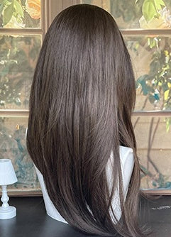 Brown Long Straight Synthetic Wig With A Cap All-in-one Set